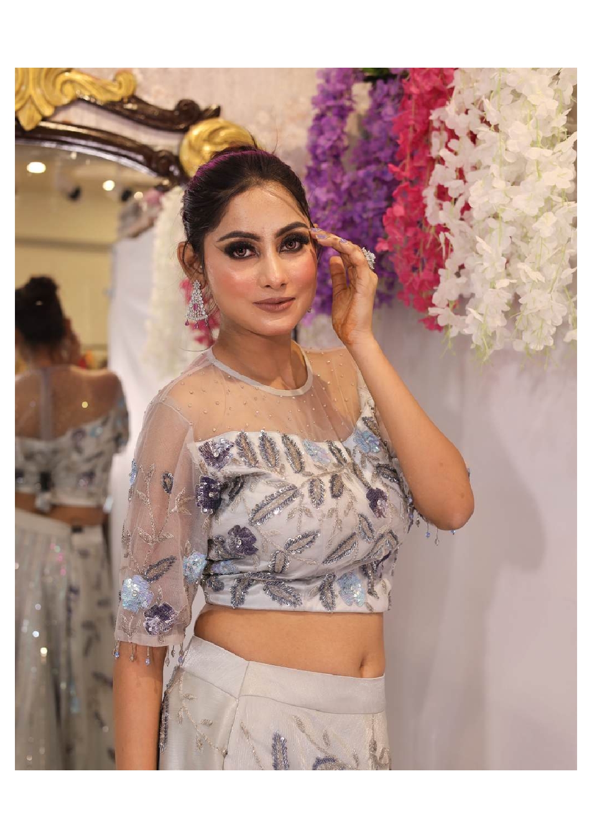 Grey Organza Skirt Top Set