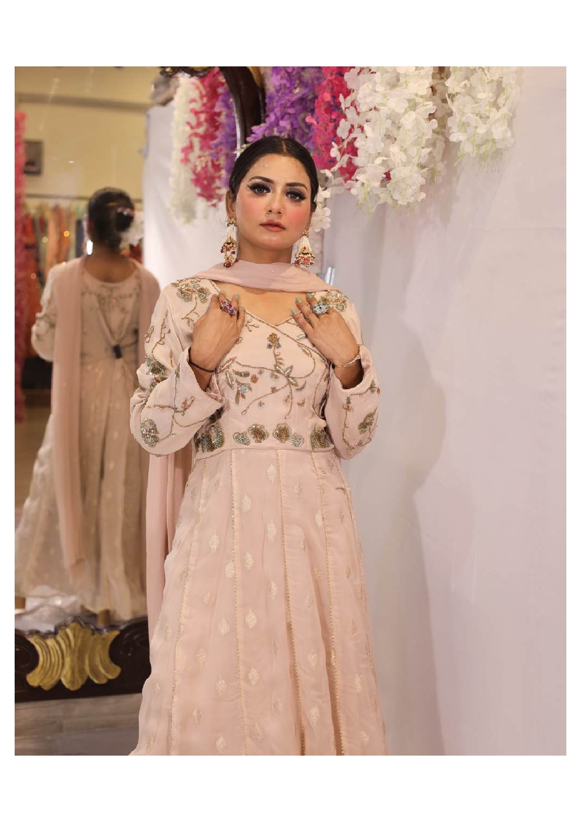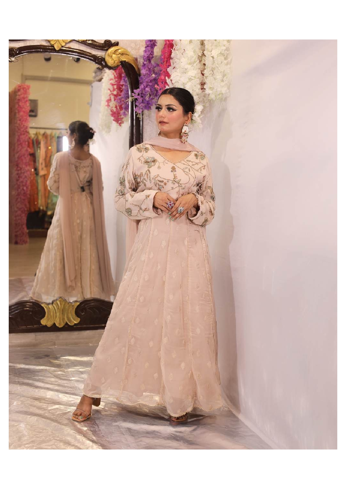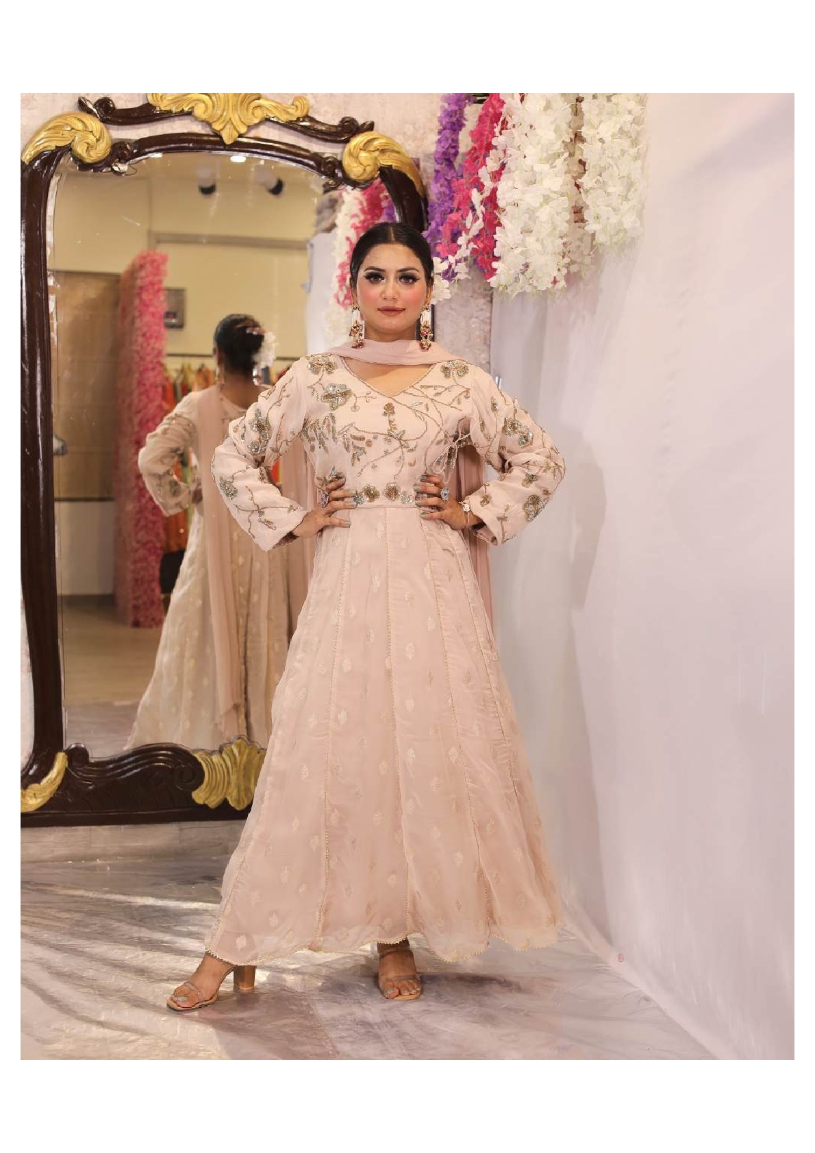 Step into elegance with this Peach full length Anarkali Dupatta Set, designed for those who seek grace and sophistication. The luxurious peach silk kali Anarkali offers a flowing silhouette, complemented by a delicate chiffon dupatta. Adorned with exquisite zardozi embroidery, the outfit exudes a regal charm. Perfect for weddings, festivals, or special celebrations, this ensemble promises to captivate with its timeless beauty. Elevate your ethnic wardrobe with this stunning creation that radiates elegance and refinement.